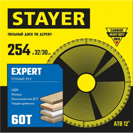 Диск пильный по дереву Expert, 254 x 32/30 мм, 60Т, точный рез STAYER 3682-254-32-60_z01