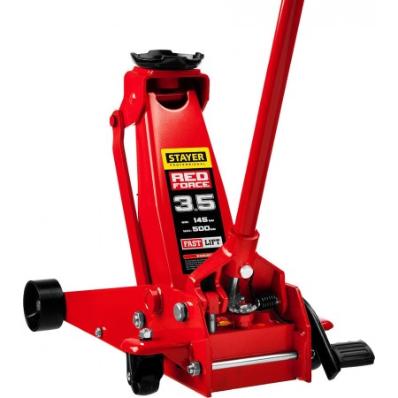 Домкрат подкатной 3.5 т, 145 - 500 мм с быстрым и высоким подъемом для СТО F-35 RED FORCE Professional STAYER 43155-3.5