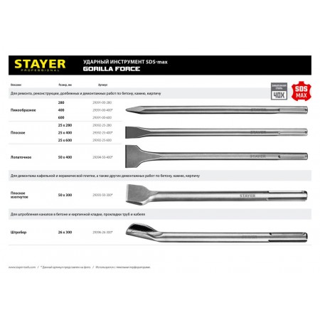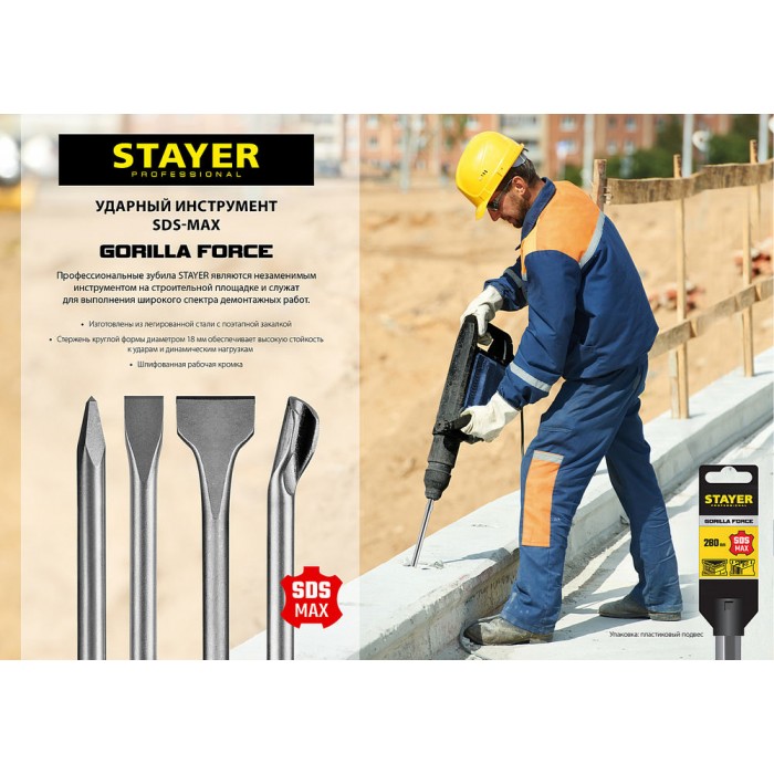 Зубила STAYER серии PROFESSIONAL - высококачественный ударный инструмент, незаменимый на строительной площадке.