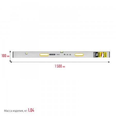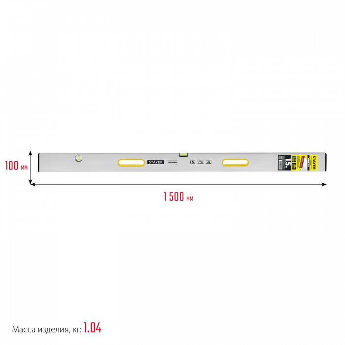 STAYER GRAND 1.5 м, точность 1 мм/м, 2 глазка, Правило с уровнем и ручками, (10752-1.5)