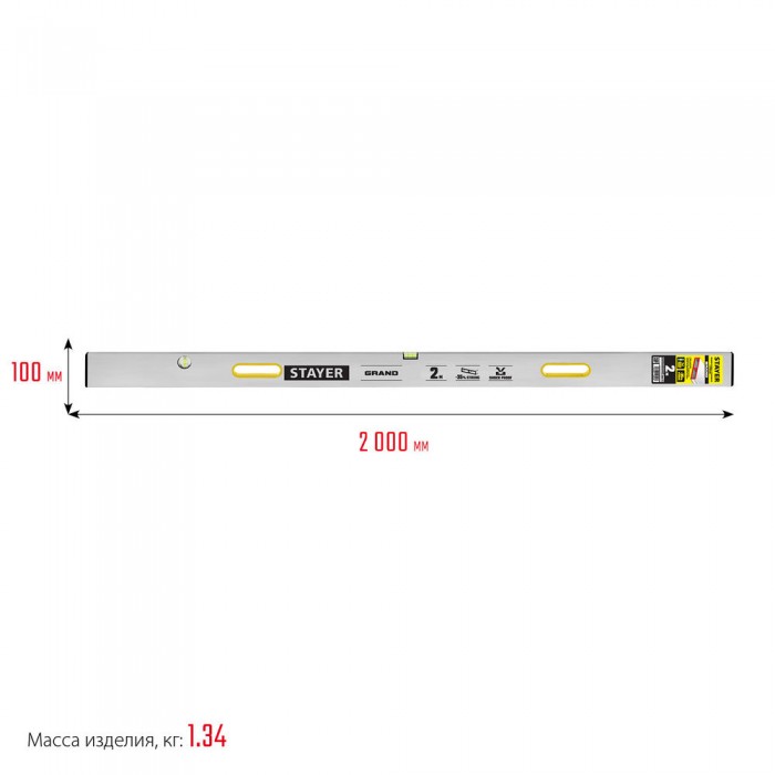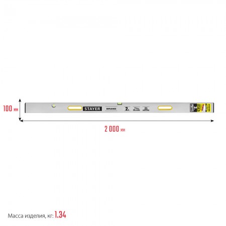 Правило с уровнем и ручками GRAND 2 м, точность 1 мм/м, 2 глазка STAYER 10752-2.0
