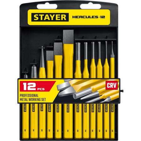Набор зубил и кернеров Hercules, 12 предметов, в пластиковом держателе STAYER Professional 21077-H12
