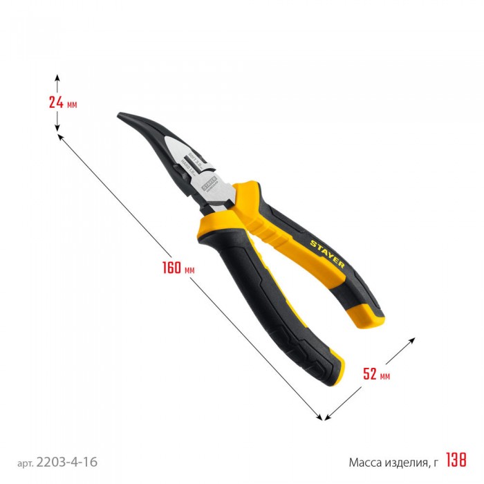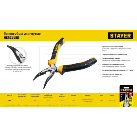 Тонкогубцы изогнутые Hercules, 160 мм STAYER 2203-4-16_z03