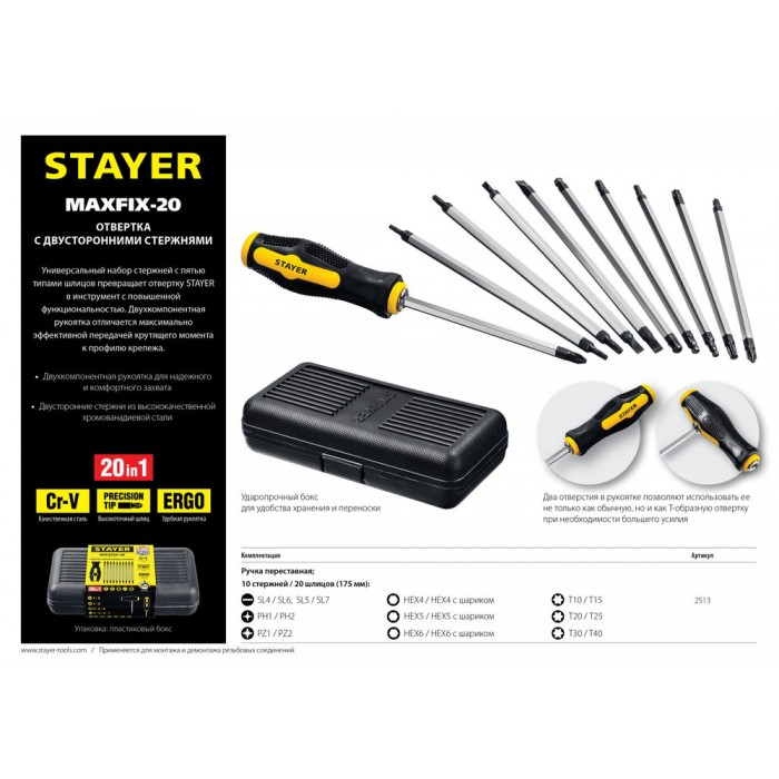 Отвертка с переставными стержнями 20 предм. Hercules-20-in-1 STAYER 2513