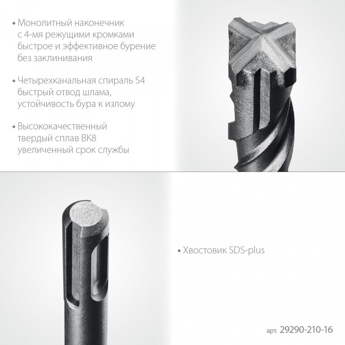 STAYER HERCULES-4Х 16x210 мм, SDS-plus бур (29290-210-16)