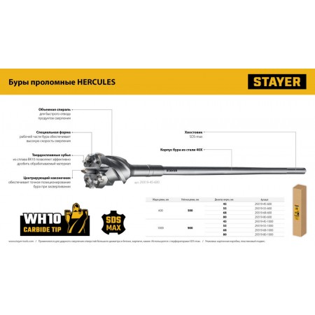 Проломные буры STAYER HERCULES 4Х SDS-max - востребованный и необходимый инструмент для выполнения строительных работ.