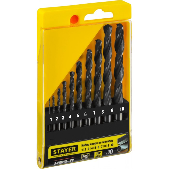 Набор сверл по металлу быстрорежущая сталь P6M5 класс В Professional HSS-R STAYER 10 шт (1-10 мм) 29602-H10_z01