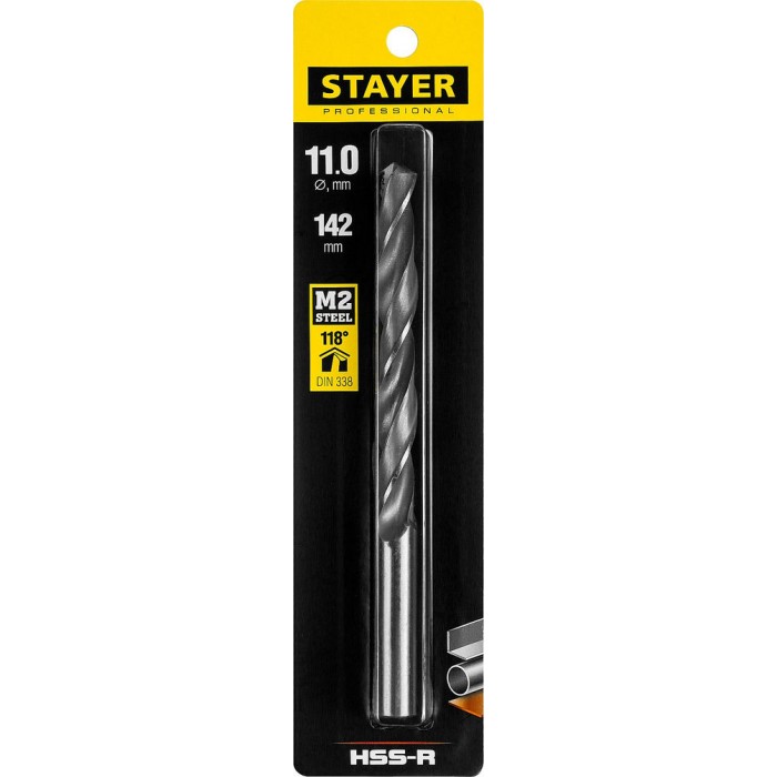 Сверло по металлу быстрорежущая сталь P6M5 Professional HSS-R STAYER 11.0x142 мм 29602-11