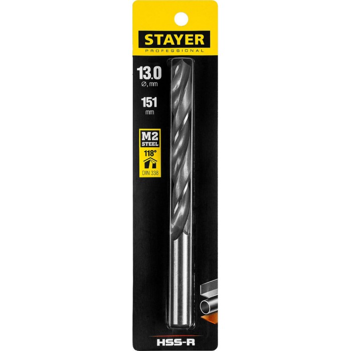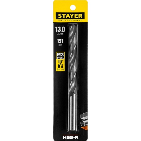 Сверло по металлу быстрорежущая сталь P6M5 Professional HSS-R STAYER 13.0x151 мм 29602-13
