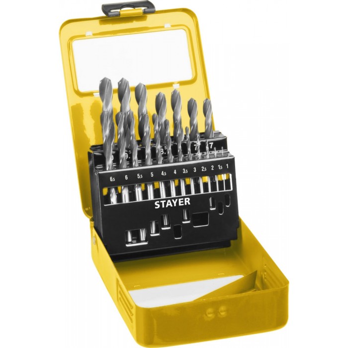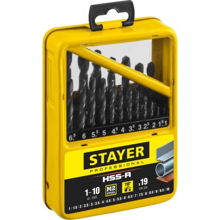 Набор сверл по металлу быстрорежущая сталь P6M5 класс В мет.бокс Professional HSS-R STAYER 19 шт (1-10 мм) 29602-H19-M_z01