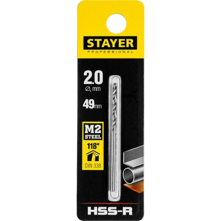 Сверло по металлу быстрорежущая сталь P6M5 Professional HSS-R STAYER 2.0x49 мм 29602-2