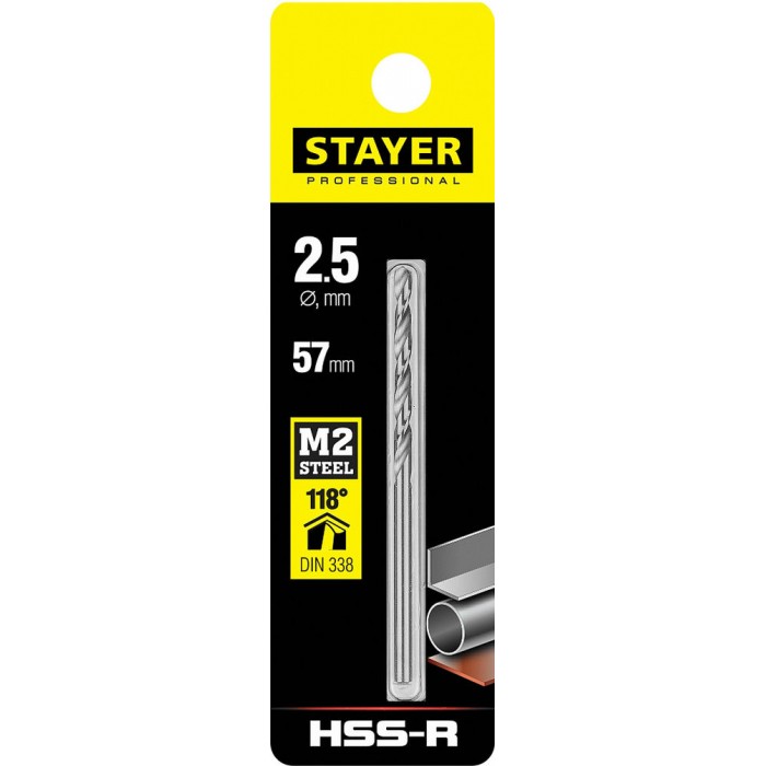 Сверло по металлу быстрорежущая сталь P6M5 Professional HSS-R STAYER 2.5x57 мм 29602-2.5