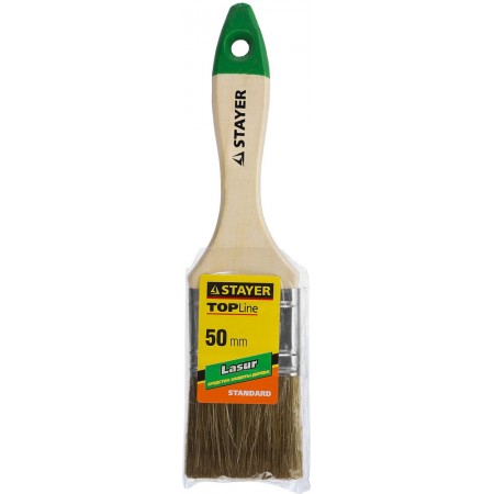 Смешанная щетина обеспечит оптимальное нанесение высокотекучих ЛКМ (лаков, пропиток, морилок, лазурей и т.п.), щетина кисти надежно закреплена стальным бандажом, а наличие удобной деревянной рукоятки обеспечит комфортную работу