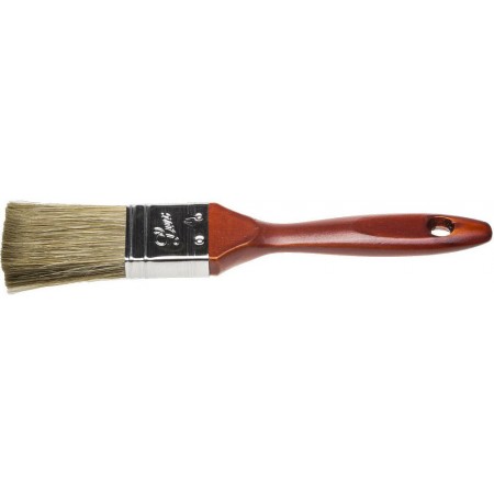 Смешанная щетина обеспечит оптимальное нанесение различных видов ЛКМ, щетина кисти надежно закреплена бандажом из никилированной стали, а наличие удобной деревянной рукоятки обеспечит комфортную работу