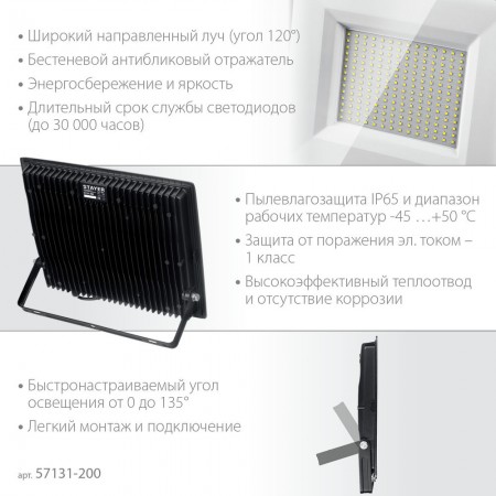 Прожектор светодиодный 200 Вт, 6500K, IP 65 LED-MAX STAYER 57131-200