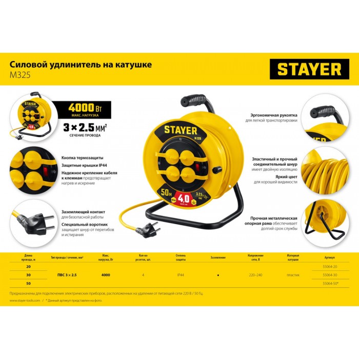 Удлинитель на катушке может применяться как в закрытых помещениях, так и на улице. Высокопрочный кабель устойчив к резким перепадам температуры.