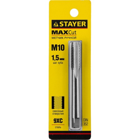 Метчик STAYER MASTER оптимально подходит для получения качественной и чистой резьбы в сквозных отверстиях в сталях и цветных металлах