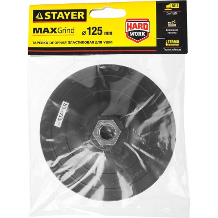 Основными достоинствами опорных тарелок Stayer являются их высокая эффективность, повышенная гибкость и элестичность, длительный рабочий ресурс и универсальность использования при обработке различных строительных и отделочных материалов.