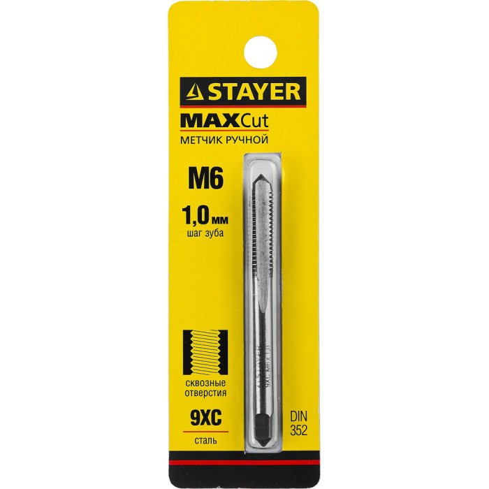 Метчик STAYER MASTER оптимально подходит для получения качественной и чистой резьбы в сквозных отверстиях в сталях и цветных металлах