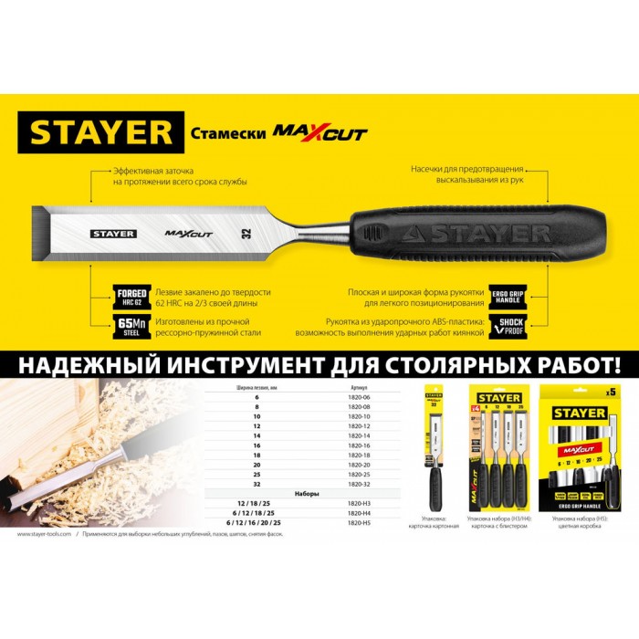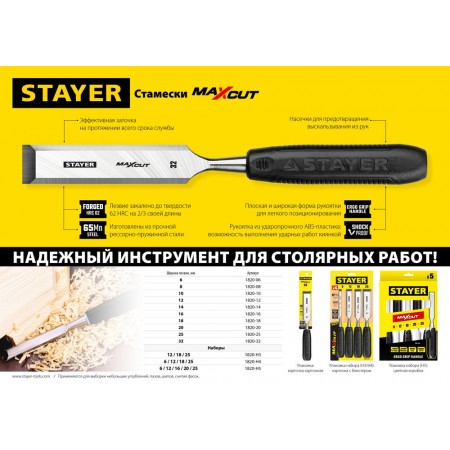 НАДЕЖНЫЙ ИНСТРУМЕНТ ДЛЯ СТОЛЯРНЫХ РАБОТ! Cтамески Stayer изготовлены из высококачественной инструментальной стали, соответствуют высоким техническим требованиям. Обладают повышенным ресурсом и обеспечивают длительную и качественную работу