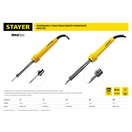 Паяльное оборудование STAYER изготовлено из высококачественных современных материалов. Профессиональный подход и учет всех тенденций развития рынка обеспечивают высокую надежность и длительный срок службы. оборудования.
