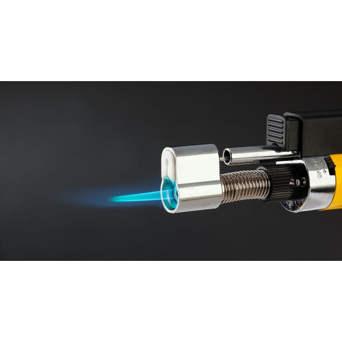 Газовая горелка предназначена для плавки и сварки пластиковых частей, нагрева малых металлических частей и плавки металла с низкой температурой плавления, ремонта ювелирных изделий, сгибания тонких стеклянных трубок, пайки медных трубок, сварки электронных и электротехнических элементов, где очень важна точность и надежность. Изделие обладает возможностью выбора температурного режима, что позволяет максимально соответствовать требованиям любой работы. Этот легкий в обращении инструмент, работающий на бутане. Универсальная горелка имеет встроенный клапан для заправки. Заправляется от баллона с бутаном для газовых зажигалок. Создает устойчивое пламя температурой до 1300 °С.