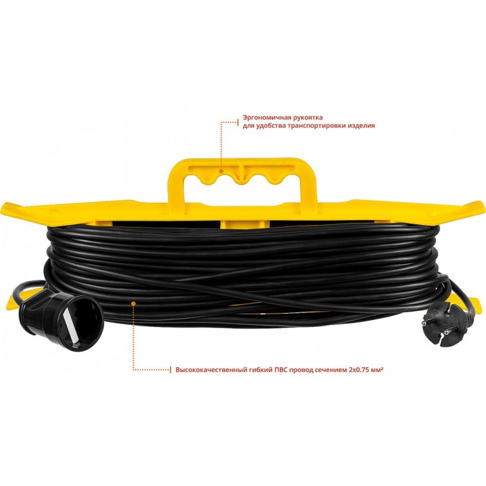 Удлинитель-шнур на рамке предназначен для подключения электрических приборов, которые находится на удалении от основного источника сети. Состоит из провода типа ПВС черного цвета и одной розетки. Облегчит работу на приусадебном участке, стройке или в быту.