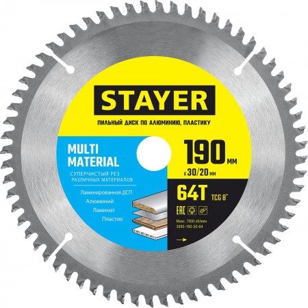 Универсальный пильный диск для резов множества материалов. Отлично подходит для пропилов Алюминия, пластика, ДСП, МДФ и ламинированных древесных материалов.