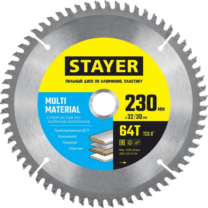Универсальный пильный диск для резов множества материалов. Отлично подходит для пропилов Алюминия, пластика, ДСП, МДФ и ламинированных древесных материалов.