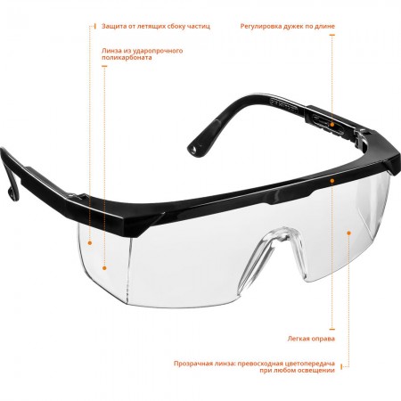 Очки защитные STAYER предназначены для защиты органов зрения от твердых летящих частиц.