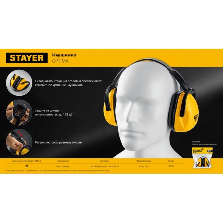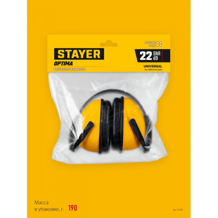 Наушники STAYER относятся к профессиональным средствам защиты органов слуха в условиях регулярного воздействия высокой шумовой нагрузки. Используются как средство индивидуальной защиты органов слуха от шума с уровнем свыше 80 ДБ.