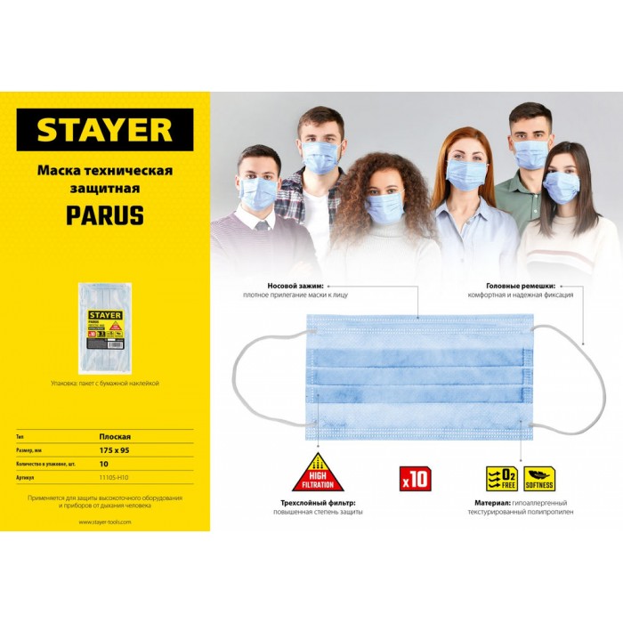 Технические маски STAYER предназначена для защиты высокоточного оборудования и приборов от дыхания человека.