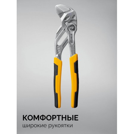 Клещи переставные-гаечный ключ – профессиональный инструмент с постоянно параллельными губкам. Заменит набор из всех ключей и обеспечит полную сохранность хромированного крепежа.