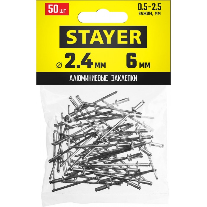Широкий размерный ряд заклепок STAYER позволяет скреплять листовые материалы разной толщины. Использование вытяжных заклепок при монтаже существенно сокращает время работы. Для установки заклепок требуется заклепочник и доступ с одной стороны скрепляемых материалов.