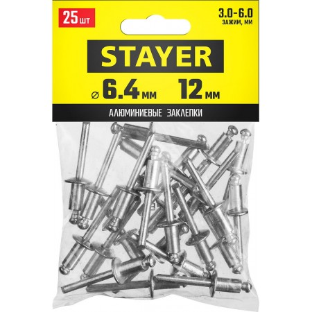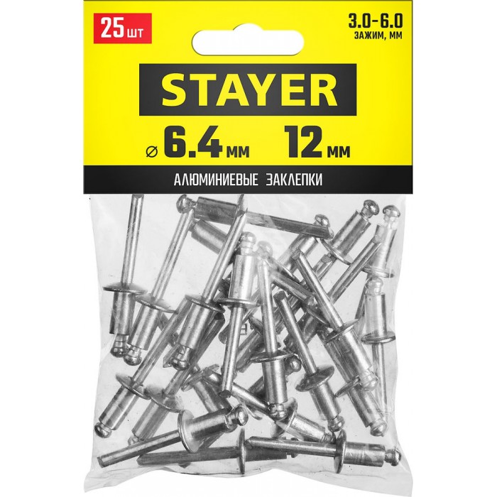 Широкий размерный ряд заклепок STAYER позволяет скреплять листовые материалы разной толщины. Использование вытяжных заклепок при монтаже существенно сокращает время работы. Для установки заклепок требуется заклепочник и доступ с одной стороны скрепляемых материалов.