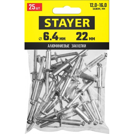 Широкий размерный ряд заклепок STAYER позволяет скреплять листовые материалы разной толщины. Использование вытяжных заклепок при монтаже существенно сокращает время работы. Для установки заклепок требуется заклепочник и доступ с одной стороны скрепляемых материалов.