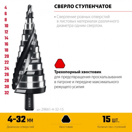 Инструмент STAYER это надежность и качество, проверенные временем! Сверление ровных отверстий различного диаметра одним сверлом