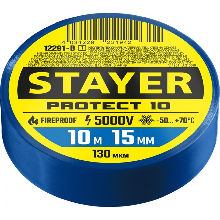 Изоляционная лента из ПВХ предназначена для изоляции и маркировки проводов при электротехнических работах с напряжением до 5000 В, а также для иных хозяйственных работ