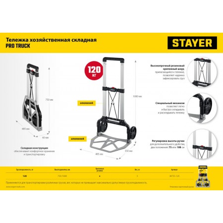 Тележка хозяйственная STAYER применяется для транспортировки различных грузов, вес которых не превышает максимально допустимый