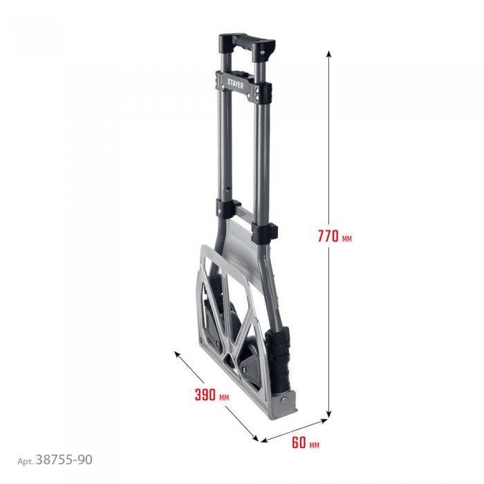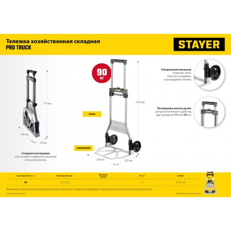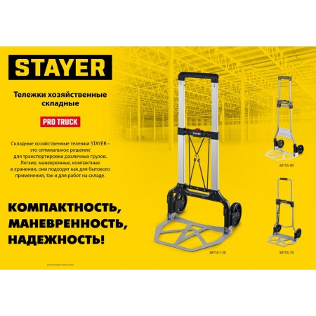 Тележка складная хозяйственная до 90кг каркас из стали платформа из алюминия 39х28см колеса d13см вес 4кг PROTruck STAYER 38755-90