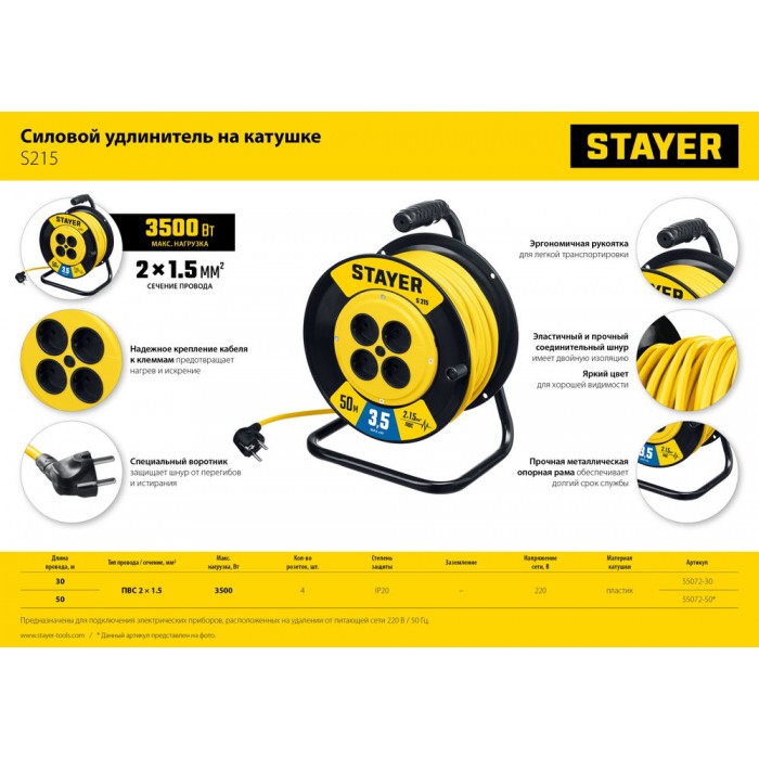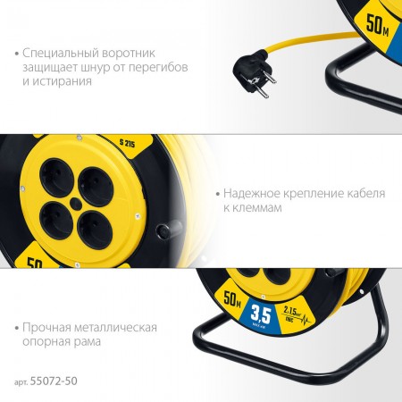 Катушка позволяет легко сматывать и разматывать кабель, обеспечивает компактное хранение.