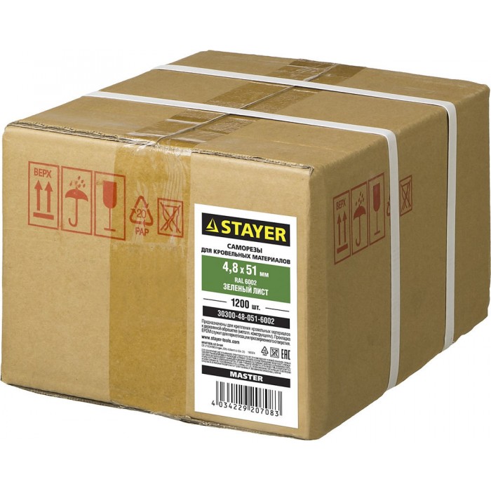 Кровельные саморезы STAYER изготовлены из высокоуглеродистой закаленной стали. Поверхностная твердость мин. 560HV, твердость в сердцевине 240-425HV. Шайба с прокладкой из износостойкой резины EPDM предназначена для герметизации соединения. Шестигранная головка с размером под ключ 8мм позволяет закручивать саморез с большим усилием.