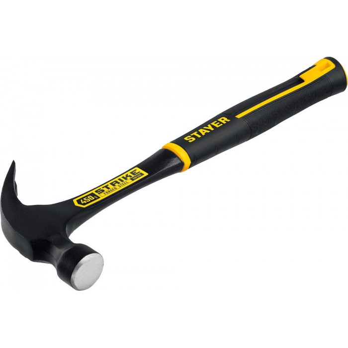 Молоток-гвоздодёр столярный цельнометаллический 450 г Strike Professional STAYER 2025-450