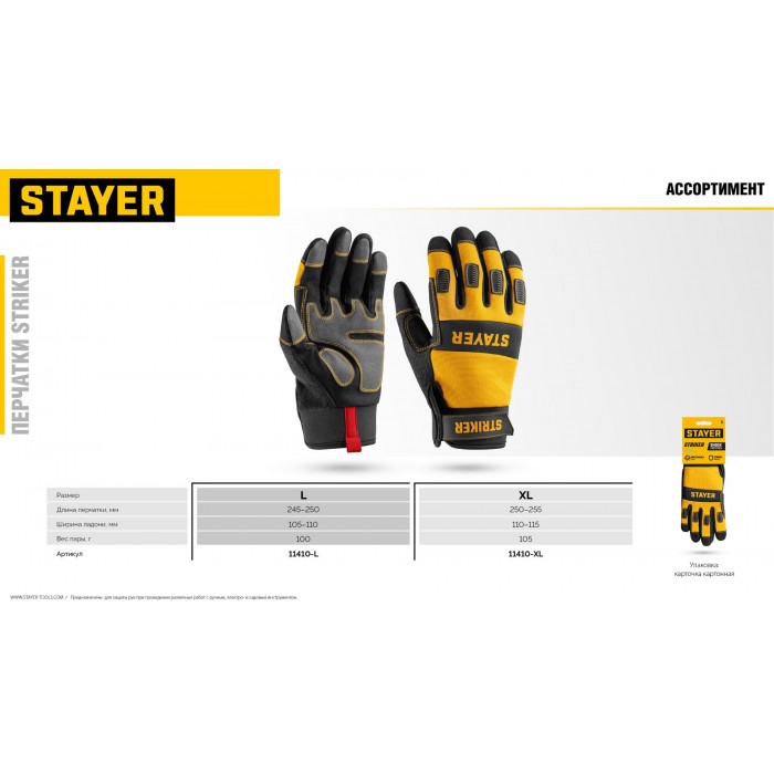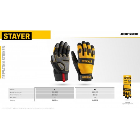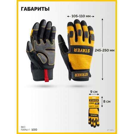 STAYER STRIKER р.L (9), комбинированные перчатки для тяжелых механических работ (11410-L)