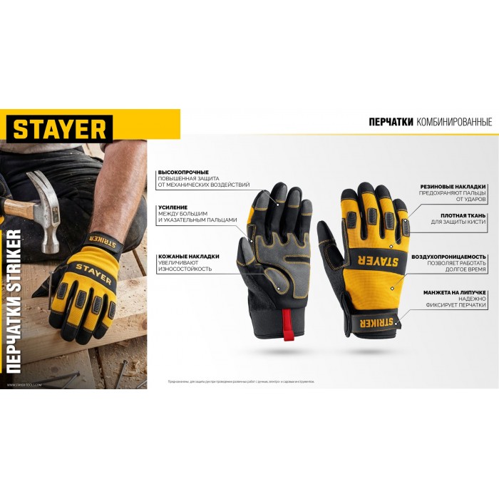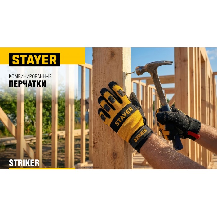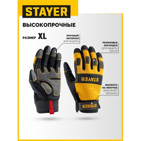 STAYER STRIKER р.XL (10), комбинированные перчатки для тяжелых механических работ (11410-XL)