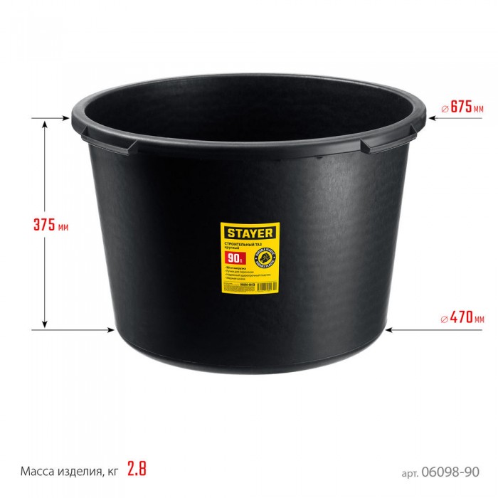 Таз строительный подходит для приготовления любых видов строительных растворов(клеевых, штукатурных, лакокрасочных). Выполнен из высокопрочного морозостойкого пластика, устойчивого к химическому и механическому воздействиям. Имеет устойчивую конструкцию и 4 формованные ручки для удобного хвата и переноски