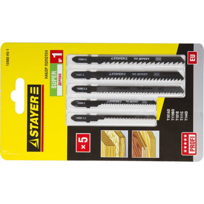 Набор полотен для лобзика T-хвост., по дереву, 5 шт SUPER №1 STAYER 15980-H5-1