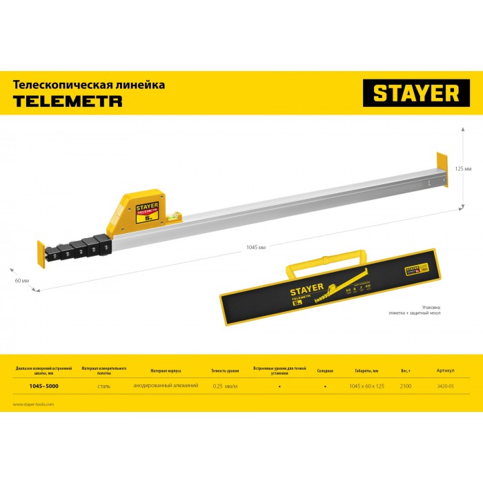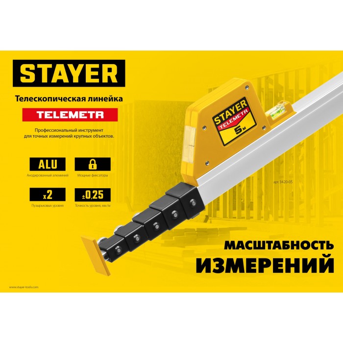 STAYER Telemetr, 5 м, телескопическая линейка, Professional (3420-05_z02)