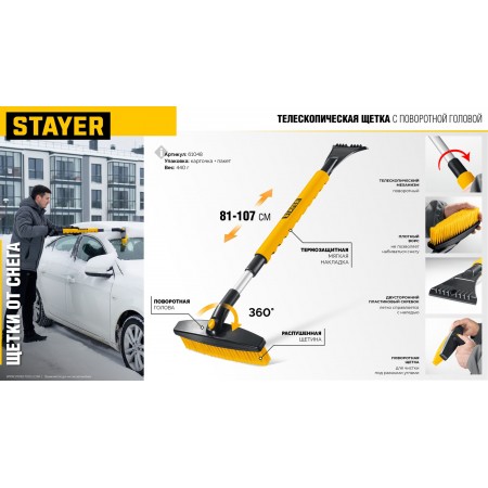 Многофункциональная телескопическая щетка со скребком от снега и льда