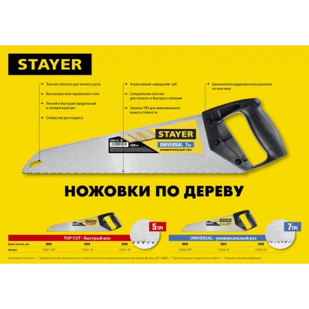 Ножовка с прямыми закалёнными крупными зубьями. Очень быстрый рез крупных и средних заготовок.